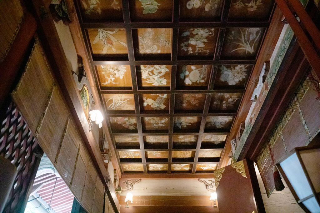 天井画には宝居智子氏や山田りえ氏など20〜70代まで約90名もの日本画家が参加。6年掛けて完成し、2017(平成29)年に公開となった