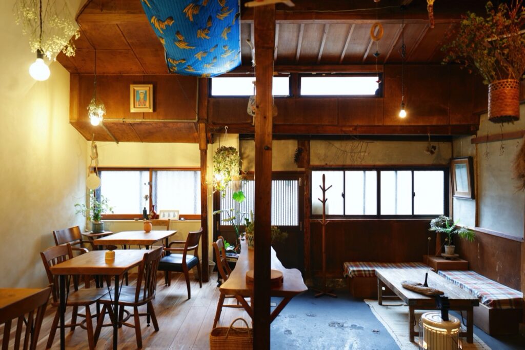 This hideaway café is located in a residential area in a renovated townhouse that is over 100 years old. The interior, which was created by the staff sharing ideas, emphasizes the coziness of wooden architecture while adding a touch of sophistication. Two types of lunch using plenty of local vegetables, curry, and sweets are available.