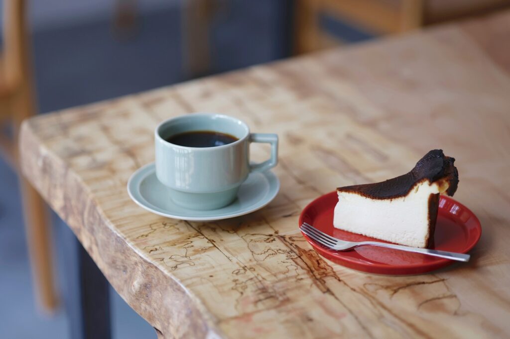 Two types of hand-drip coffee are on standby, using beans from Demachiyanagi [NuCUPCOFFEE]. Pair it with homemade basque cheesecake for a pleasant café time.
