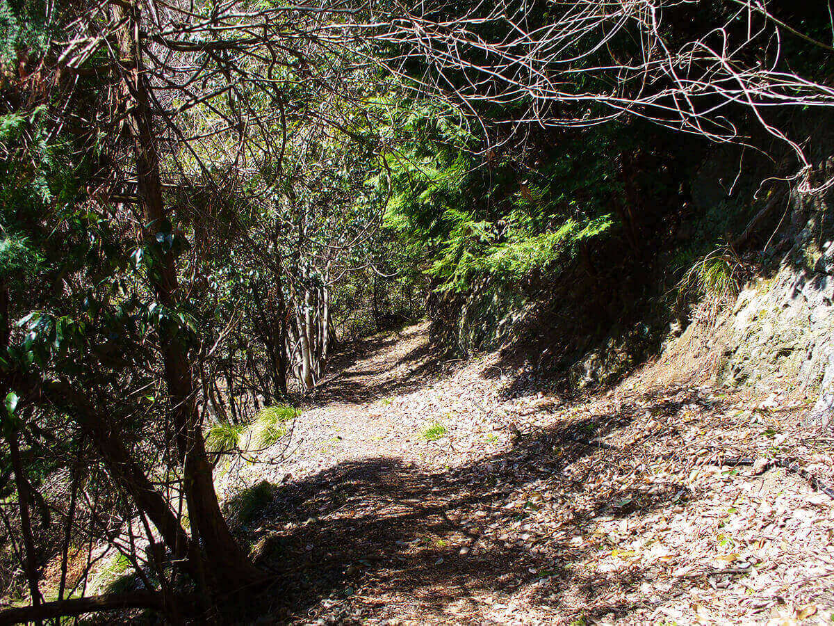 夜泣き峠を歩いてみると、急勾配の坂が続くが歩きやすい道で、昔の峠の面影を今に残している。だが、狭い谷の上で、雑木林の中にあり、昼なお暗い。眺望も樹木に遮られて、ほとんど見られない。幼い子が不安に駆られて泣き出したとしても不思議ではない雰囲気だった。