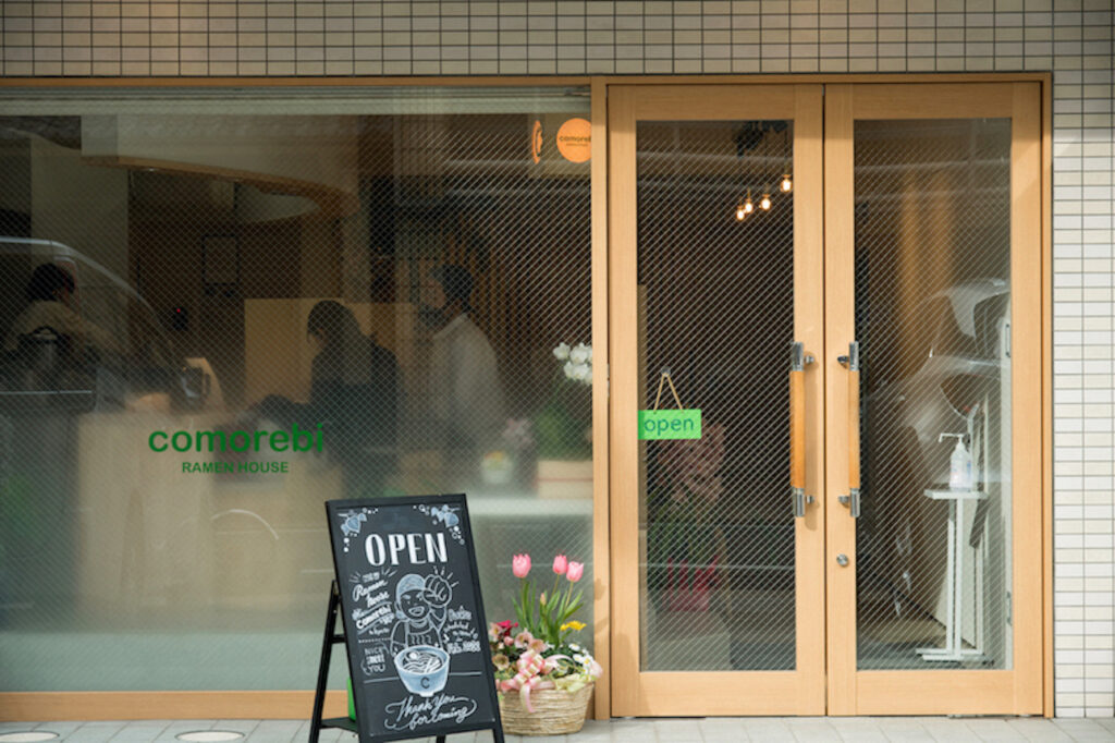 綾小路新町に登場したラーメン店。大きな窓から日差しが差し込む店内は、木の温もりが漂うカフェのような居心地良い空間。店主堀井さんは滋賀の有名ラーメン店で修行後、祖父の出身地である丹後地域での交流を深めるため地元食材を使ったラーメンイベントを開催。コロナ禍でイベントが難しくなり、実家を改装して店舗を開業。