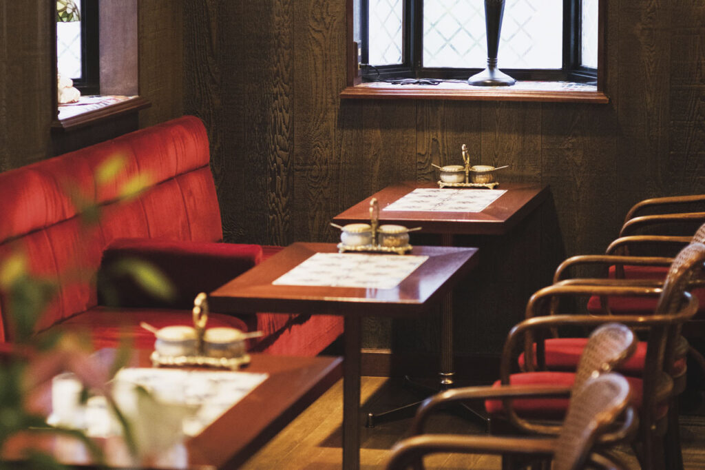 2人の温和な雰囲気とサイフォン式のコーヒー、さらに貝の形をした銀製のシュガーポットなど年代物の調度品に囲まれホッとひと息。トーストやサンドイッチ、パフェなどメニューも豊富で、口溶けのよい黒い食パンを使ったフルーツサンドは創業からのロングセラー。春まではあまおう、夏はスイカやメロンといった季節のフルーツを使用する。