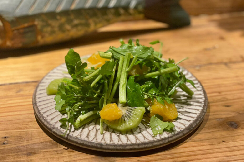 クレソンとキウイのサラダ1000円。食材が持つみずみずしさや甘さを堪能できる